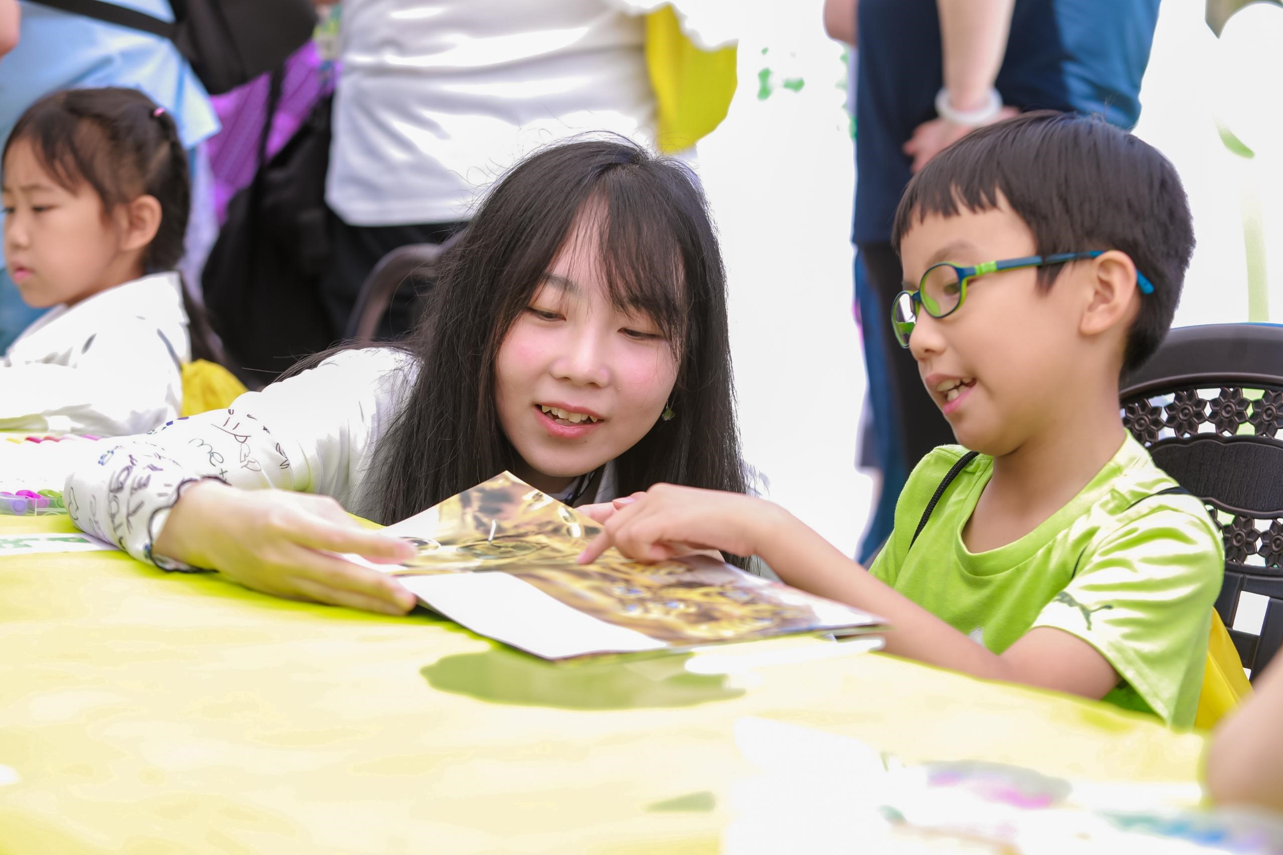 早上8點(diǎn),劉露、張穎、王洋3位青年已經(jīng)陸續(xù)開始布置現(xiàn)場(chǎng)、擺放材料、準(zhǔn)備充氣發(fā)箍和充氣手環(huán),為參加開放日的公眾打卡,圍繞《一生》《一季》科普?qǐng)D書宣傳,為前來參觀的公眾答疑解惑,協(xié)助組織上、下午共4場(chǎng)科普讀書會(huì)和親子互動(dòng)活動(dòng),共計(jì)60余名小朋友及其家長參與,活動(dòng)氣氛熱烈,宣傳效果顯著。